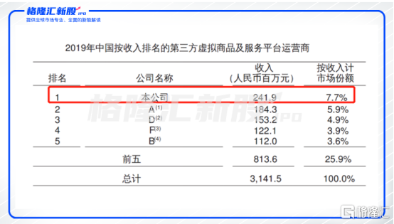 目前,据弗若斯特沙利文的资料,中国的第三方虚拟商品及服务行业相对集中,十大参与者占2019年总GMV的约48.1%。以收入计算,福禄是中国最大的第三方虚拟商品和服务提供商。