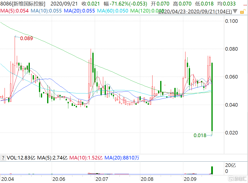 新维国际控股(8086.HK)暴跌超70%创历史新低 上周曾发盈警
