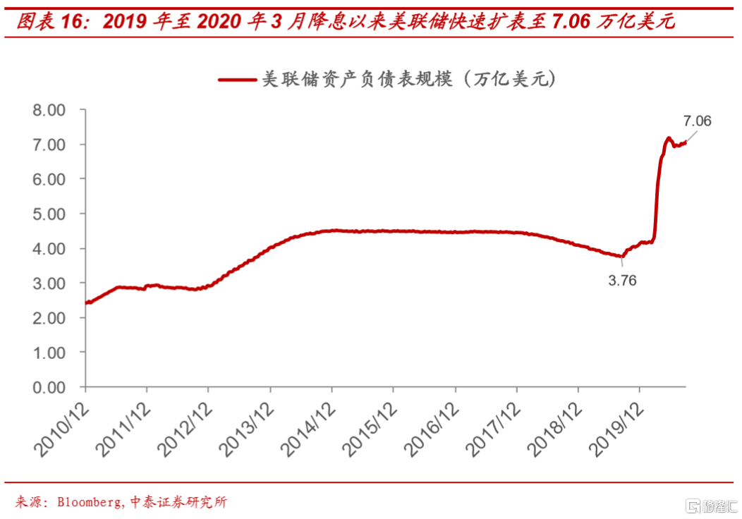 与此同时,为了应对财政长期的入不敷出,美联储通过宽松、扩表等方式,征收“铸币税”。今年疫情以来,为弥补防控不力带来的经济损失,特朗普政府更加无底线的扩张财政支出并迫使美联储更大幅度的扩表:截止9月,美国政府四轮财政支出总计规模达2.6万亿美元以上,美联储疫情以来扩表规模更是达到史无前例的7.06万亿美元,预计2021年美国财政将恶化到无以复加的程度。