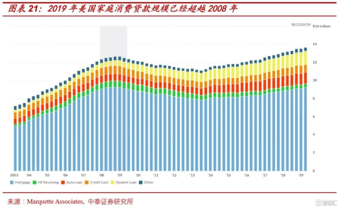 这种贫富分化最直接的体现就是美国中产及以下阶层家庭面临看不起病,上不起学的窘境。根据OECD Health Statistics的统计数据,从医疗支出来看,2019年美国人均医疗支出占家庭收入的中位数为41.3%,这一数据在所有的OECD国家中雄踞第一,医疗成本比2010年增加44%;学生教育贷款从2008年的金融危机6110亿一路攀升至2019Q3的1.49万亿美元。
