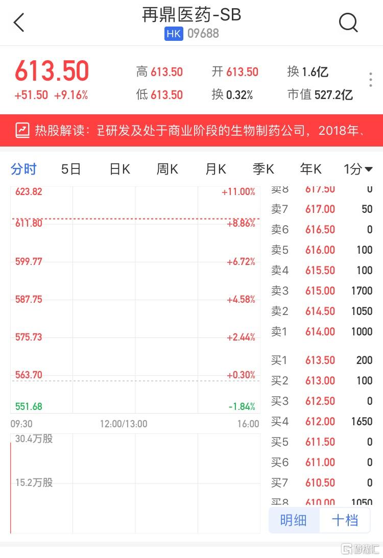 港股异动 | 再鼎医药(9688.HK)首日上市高开9.16%
