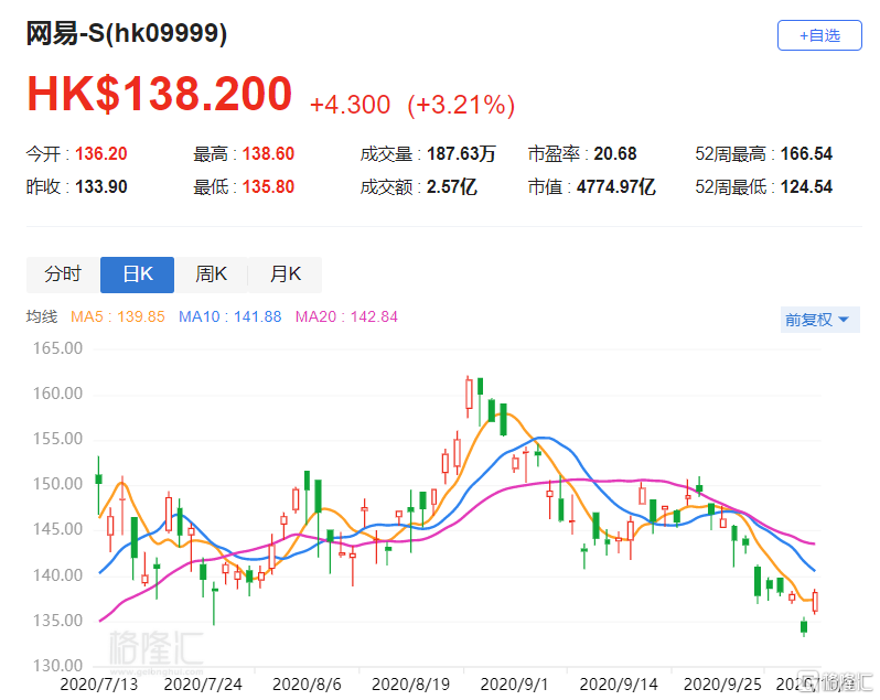 港股异动 | 网易(9999.HK)涨3.21% 下半年新游戏业务将令收入增长