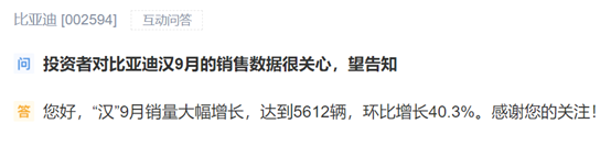 其中,“汉”新车型汉上市后销售大幅增长,在过去的9月份销售就销售了5612辆。