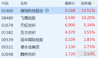 港股异动 | 纺织品及布料板块继续走强 天虹纺织(2678.HK)涨逾5%