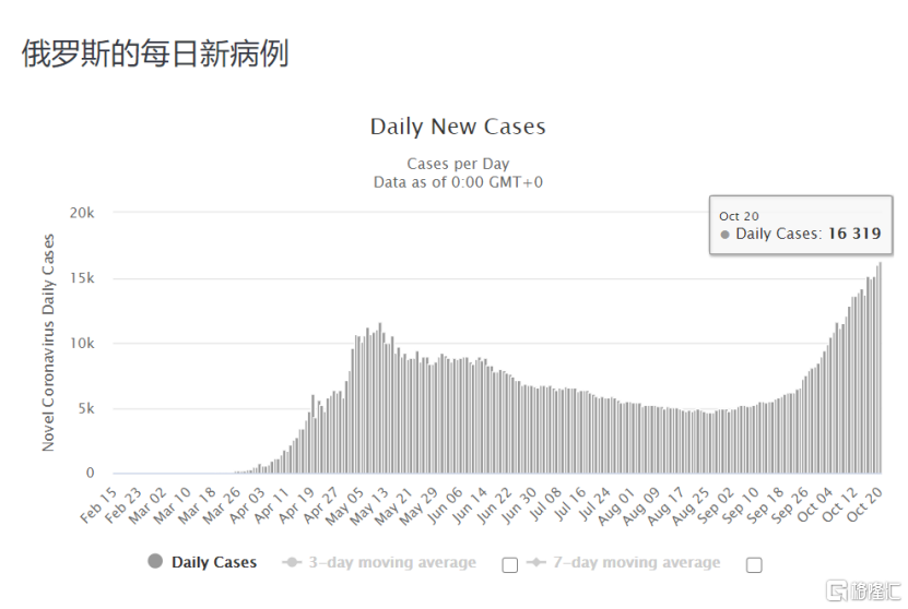 值得注意的是,就单日新增确诊数量来说,俄罗斯当前的疫情已赶超今年春季。当时,俄单日新增病例的最高值为1.13万例。