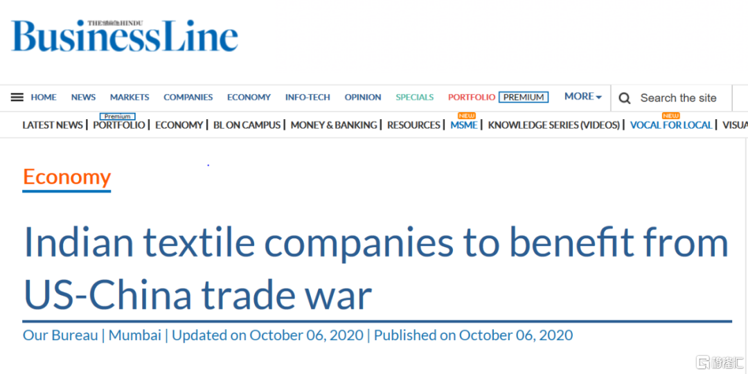 值得注意的是,就在中文媒体讲述“疫情导致国际纺织订单从印度流向中国”的故事时,印度媒体却在同步讲述另外一个故事——“中美贸易摩擦导致国际纺织订单从中国流向印度”的故事。