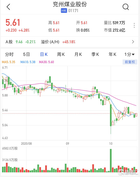 港股异动丨兖州煤业股份(1171.HK)高开逾4% 拟提高2020-2024年度现金分红比例