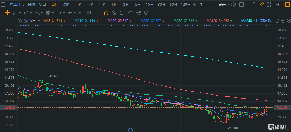 汇丰控股(0005.HK)延续反弹 英国考虑让银行明年恢复派息