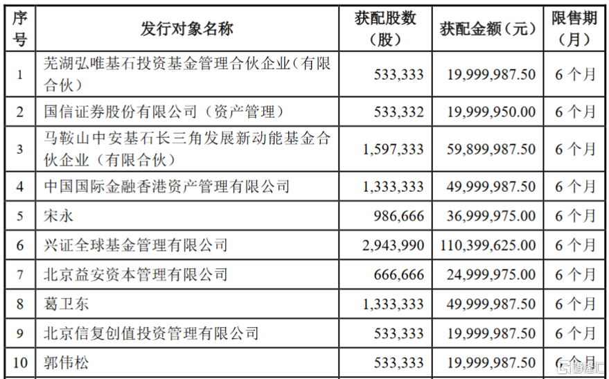 格隆汇 10 月 28日丨中宠股份(002891.SZ)披露非公开发行股票之发行情况报告暨上市公告书,按照《认购邀请书》中规定的发行价格、发行对象及配售股数的确定程序和规则,确定此次非公开发行的发行价格为37.50元/股,发行股份数量1737.3312万股。配售对象及其获配股数及获配金额如下: