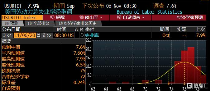 目前市场普遍预计,美国10月非农增加59.3万,失业率降至7.6%。