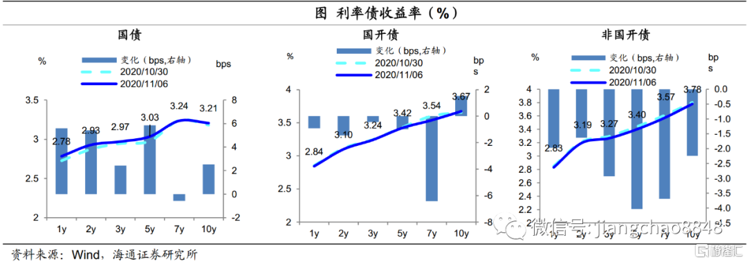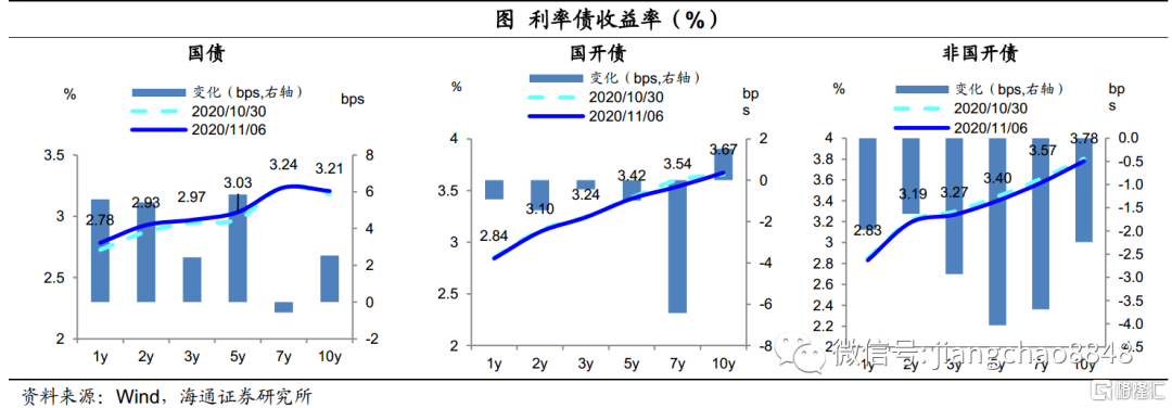 二级市场:上周国债跌、国开涨、非国开大涨。1年期国债收益率上行6BP,10年期国债上行3BP;1年期国开债下行1BP,10年期国开债上行2BP,10年国开隐含税率下行至13%。从曲线位置看,当前国债中短端(3m、1y、3y)配置价值最高,国债和国开收益率曲线中10-5Y均最陡。