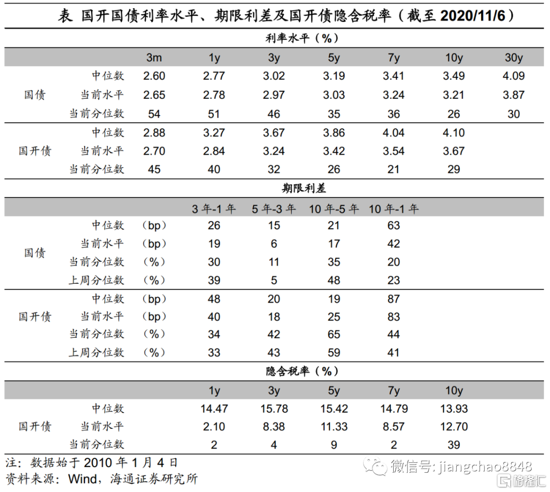 从隐含税率来看,10年国开债隐含税率下行至13 %,位于39%分位数,其余关键期限的隐含税率仍相对较低。