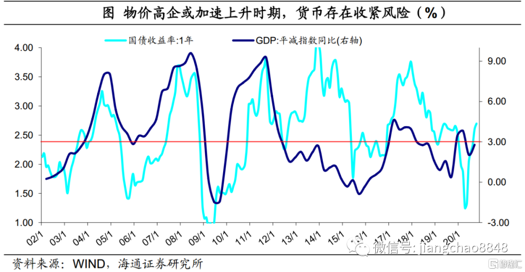 最后,明年二季度通胀上行风险未消,关注可能的货币收紧风险。历史上每一次货币政策收紧,都发生在综合物价增速高企或者是加速上升时期。当前经济复苏延续,加上主要国家货币明显超发,明年或将面临再通胀的重启。我们预计明年二季度PPI存在上行风险,届时需要关注可能的货币收紧风险。