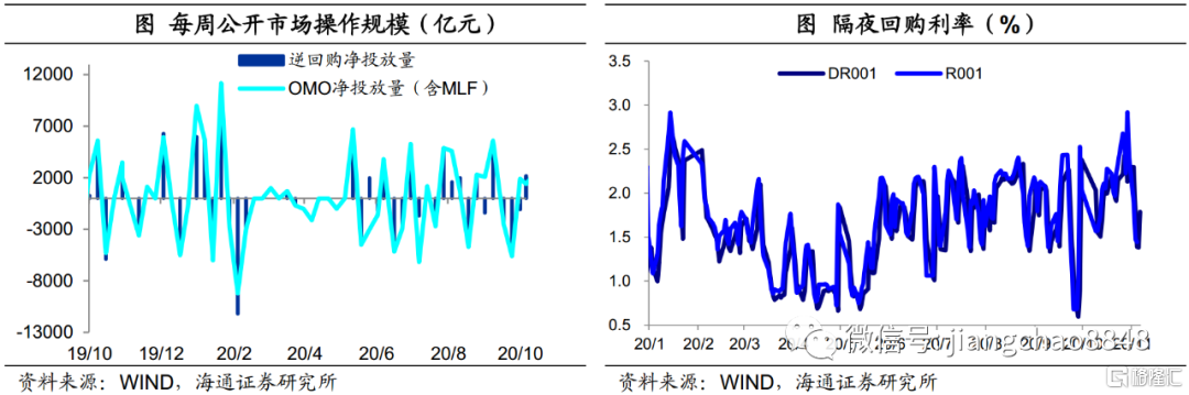 其次,短期收紧仍缺乏基本面支持。一方面,当前经济增速还未回到潜在增速水平,9月以来通胀还在回落。另一方面,央行表示不能出现“政策悬崖”,疫情特殊时期应允许宏观杠杆率有阶段性的上升,表示明年杠杆率更稳一些,这意味着明年央行从阶段性容忍杠杆提升向稳杠杆回归。总体而言,现阶段货币政策稳定性有望延续,后续是否收紧看经济修复的持续性、明年PPI上行幅度等基本面因素。