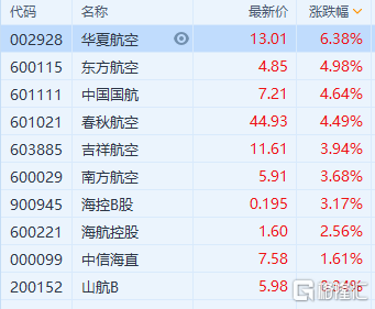 港A两市航空股普涨 南航(1055.HK)涨超5%