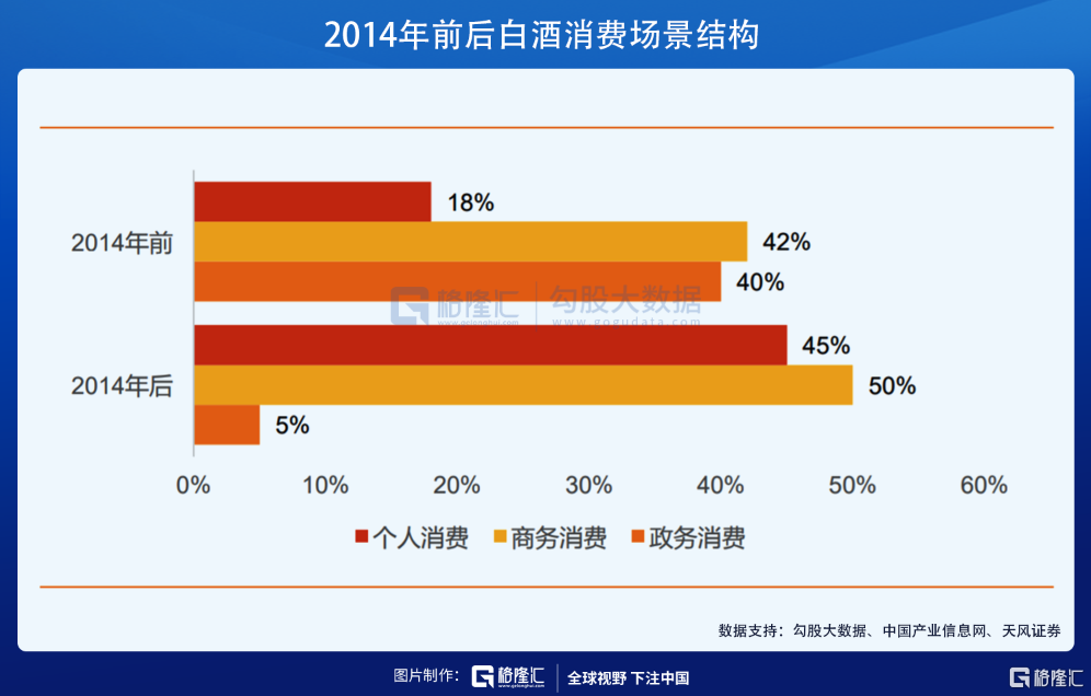 这也是有基本面原因的,2014年之后,高端白酒的政务消费占比已经大大下降了。
