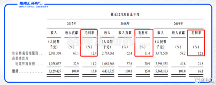 从招股书可知,华润万象生活整体毛利率较低主要由于两方面的原因。一方面与住宅物业服务毛利率过低有关。数据显示,2017-2019年住宅物业服务毛利率一直维持在12%左右,远远低于上市物管企业平均毛利率30.6%的水平。