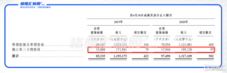 招股书显示,目前华润万象生活住宅物业在管面积13180万平方米,在管面积9750万平方米,储备面积只有3430万平方米,储备面积/在管面积比率只有0.35。而营收贡献大的购物中心目前没有储备面积,写字楼的储备面积为140万平方米。对比之下,2020年上半年显示碧桂园服务储备面积达到了42630万平方米,储备面积/在管面积的比率为1.33。此外,上半年储备面积/在管面积比率超过0.5的物业股也不在少数。相比较而言,华润万象生活储备面积相对有限。