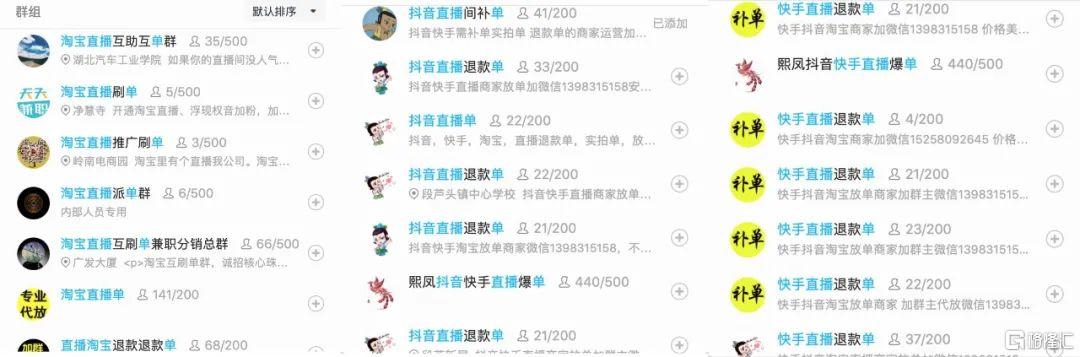 看似是一场极端的刷单案例,但当深燃通过QQ、百度、知乎搜索时,均发现了大量提供直播间服务的刷单团队。因为“刷单”是被严打的行为,在QQ里,这些群被冠以“补单”、“退款单”、“派单”等群名。