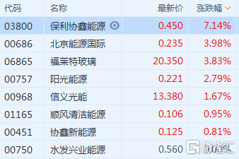 港股异动 | 光伏股普涨 保利协鑫能源(3800.HK)涨逾7%
