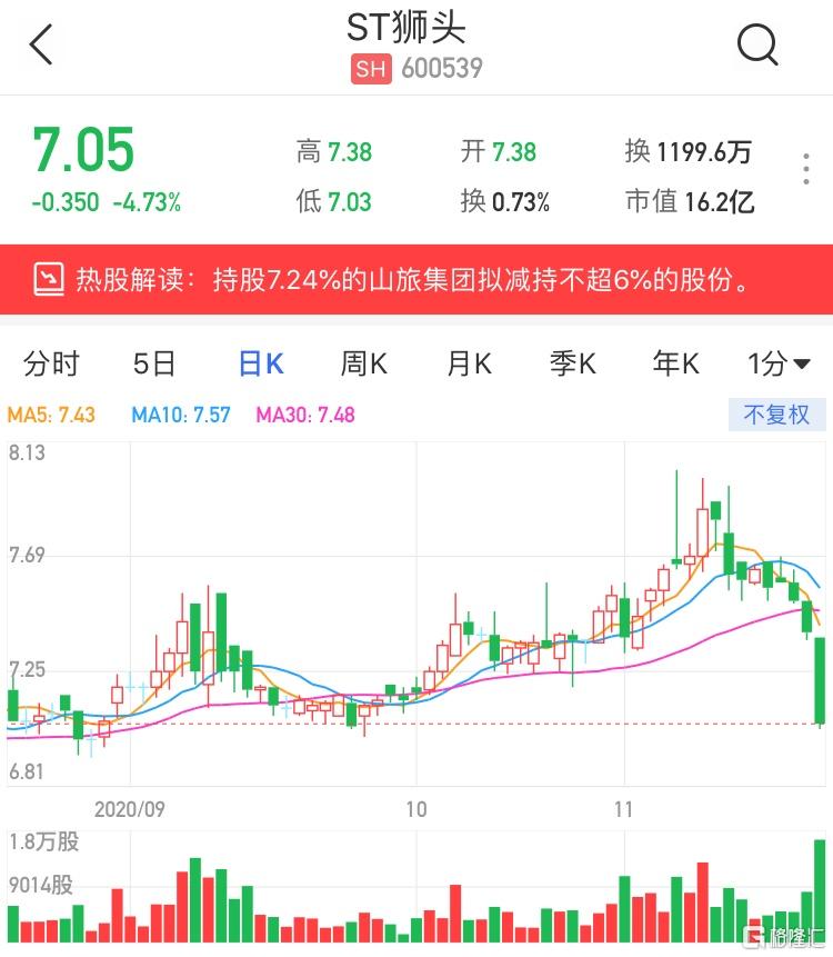 A股异动 | ST狮头(600539.SH)逼近跌停 山旅集团拟减持公司不超6%股份