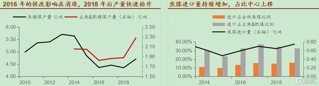 据了解,截至2019年,国内整体焦精煤产量为4.7亿吨、主焦和肥煤产量为2.28亿吨,进口焦煤0.75亿吨,占整体焦煤供给的16%,占主焦和肥煤供给的33%。