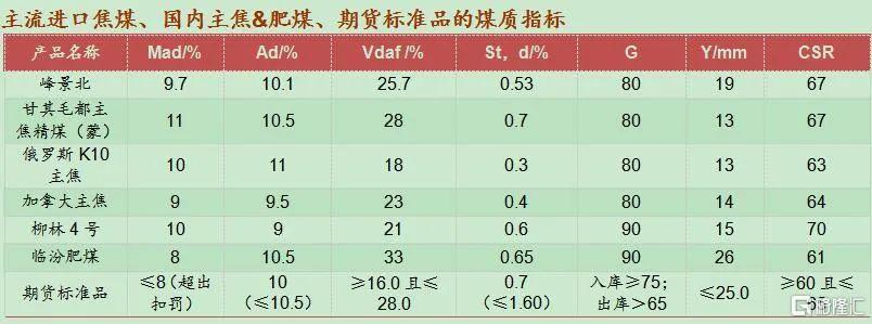 为什么将进口焦煤特意划为主焦和肥煤一类,并单独针对这一分类计算平衡表呢?主要依据在于进口煤的煤质指标与国内主焦和肥煤以及期货交割标准更为接近。换句话说,主焦和肥煤的平衡表,才更贴近期货对应现货的真实情况,而且进口的焦煤更多偏向于主焦和肥煤的指标,如果将这些统统划分到整体焦煤平衡表中有失偏颇的,且会低估其影响。