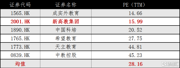 回归资本市场来看,新高教的估值在3月底已开始逐步修复,但目前仍处于上市来的中枢下方。若对比港股几家代表教育公司的估值来看,新高教明显低于均值水平,估值吸引力凸显。