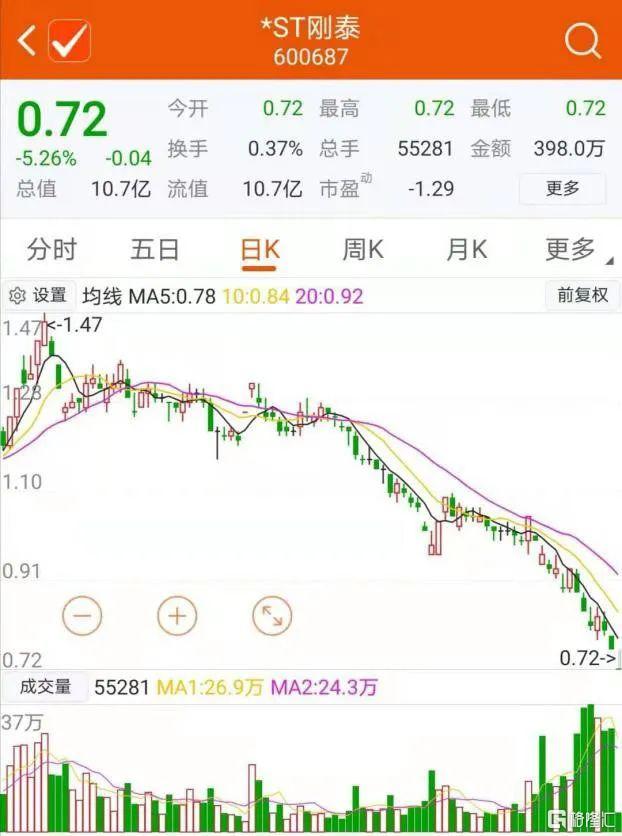 *ST刚泰今日收于0.72元/股,如果该股可以在接下来的7个交易日连续收获涨停,则能够在连续的第20个交易日股价恢复1元以上。