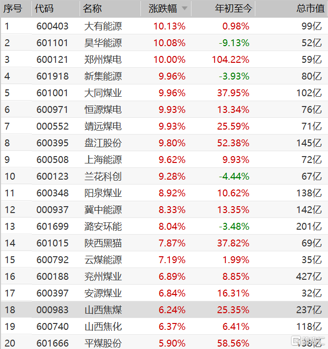 煤炭板块涨幅扩大,涨停个股增加