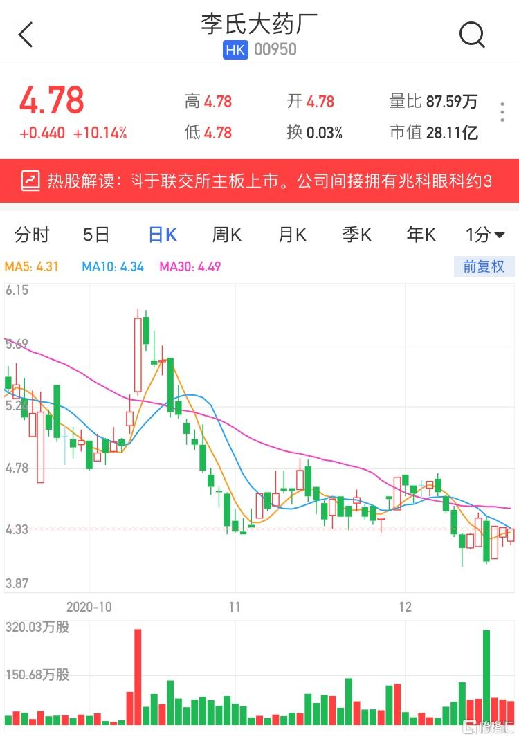 港股异动 | 李氏大药厂(0950.HK)高开10.14% 拟分拆兆科眼科于联交所主板上市
