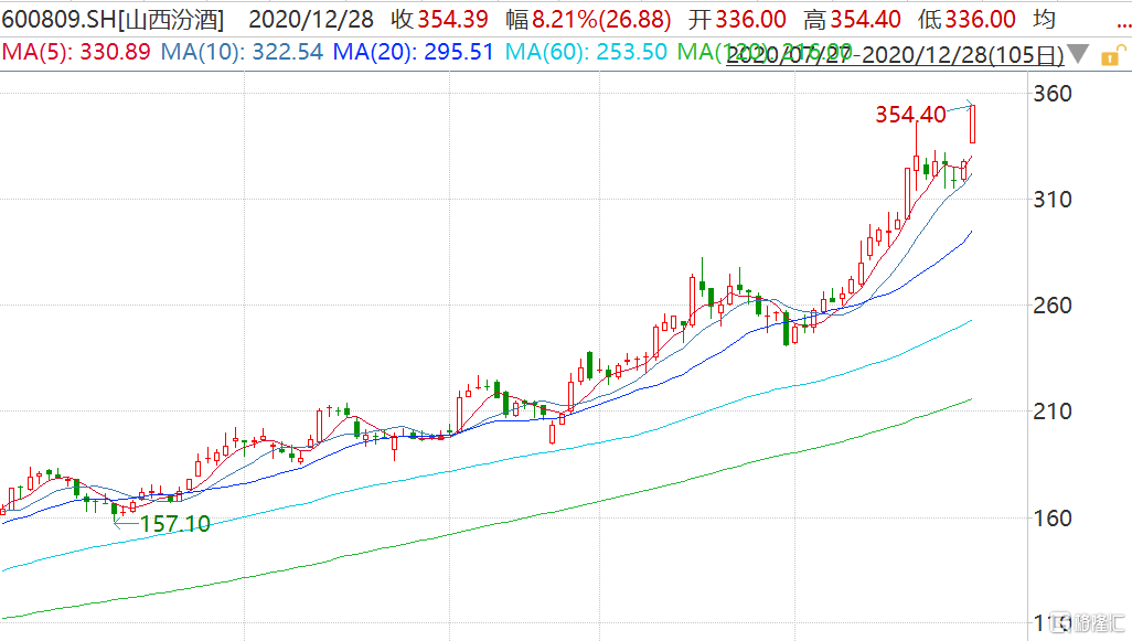 山西汾酒(600809.SH)涨超8%创历史新高 预计2020年全年收入增长17%