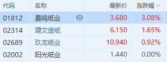 港A两市纸业股普涨 11月全国机制纸及纸板产量同比增长8%