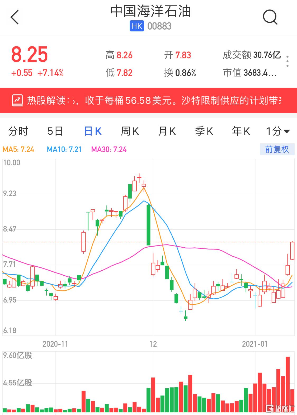 港股异动丨多重利好叠加 中海油(00883.HK)大涨逾7%