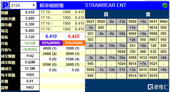 新股暗盘 | 稻草熊娱乐(2125.HK)暗盘段涨9%