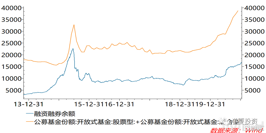 到目前为止,支持A股走强的,是另外两股力量:基金发行融资融券,这两项依然在快速上升。