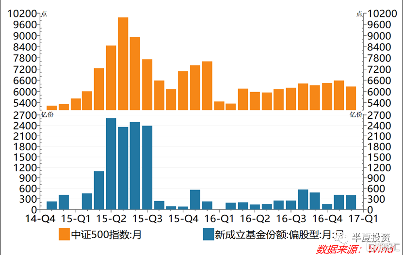 在2015年7月的典型案例中,我们可以看到,市场大跌的第一个月,新发基金依然位于高位,而在市场下跌二个月后,基金发行从之前的火热一下子转入冰点。