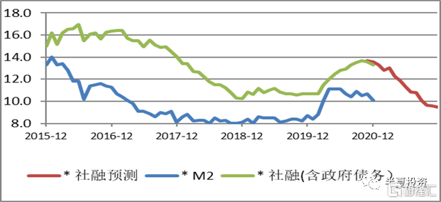 随着经济的恢复甚至局部过热,2021年的中国的宏观政策取向,已经变成了稳杠杆,保持宏观杠杆率基本稳定。也就是意味着,保持宏观杠杆基本稳定。也就是意味着,社融增速,会从当前的13%以上,明显的下降到10%左右。
