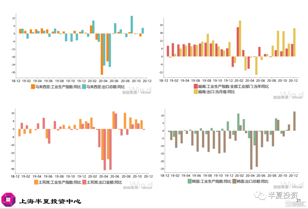 最近几个月,虽然海外的疫情还没有得到很好的控制,但是海外的工业生产已经普遍的显著恢复。与中国出口竞争的主要的出口国,比如,越南,马来西亚,土耳其,韩国,他们的工业生产和出口,已经恢复了正增长。