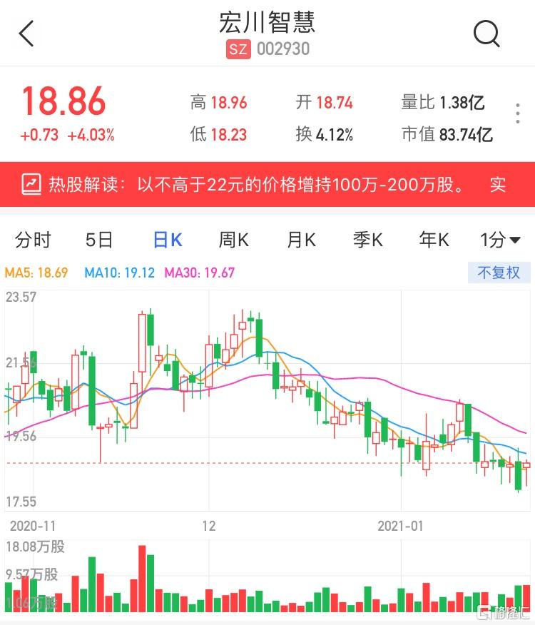 格隆汇1月25日丨宏川智慧(002930.SZ)现报18.86元,涨4.03%,暂成交1亿元,最新总市值83亿元。宏川智慧上周五(22日)晚间发公告称,实际控制人、董事长、总经理林海川先生计划于本公告披露之日起未来6个月内,通过集中竞价交易或大宗交易方式增持公司股份,增持股份数量不低于100万股且不超过200万股,增持价格不高于22元/股。