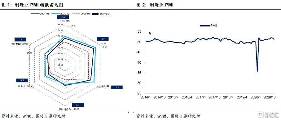 生产扩张速度有所放缓。1月PMI生产指数为53.5%,较上月下降0.7个百分点,在局部疫情以及冬季停工的影响下,生产扩张增速连续2个月放缓。下一阶段,在就地过年影响下,生产企业停工周期或有所缩短,带动生产走强。