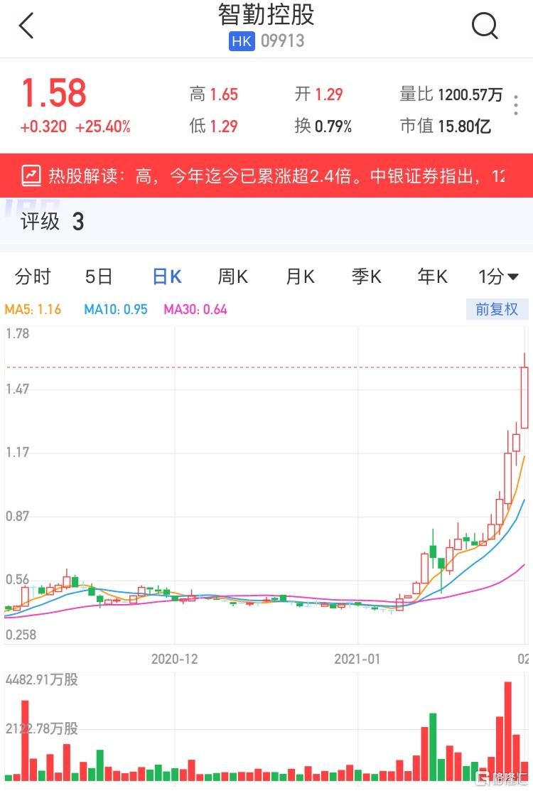 港股異動 | 智勤控股(9913.HK)大漲超25%創歷史新高 今年迄今已累漲超2.4倍