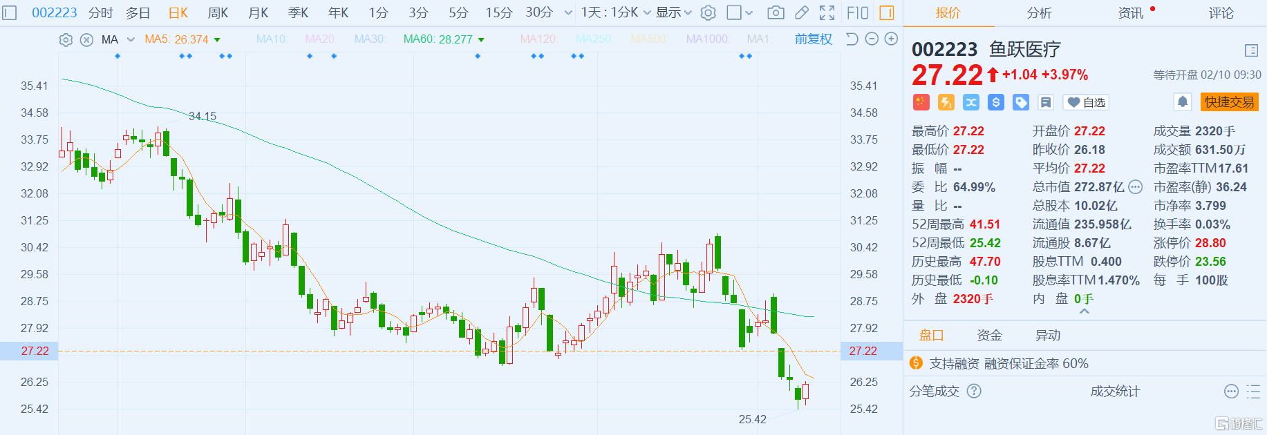 A股异动 | 鱼跃医疗(002223.SZ)高开近4% 拟回购3亿元-5亿元股份