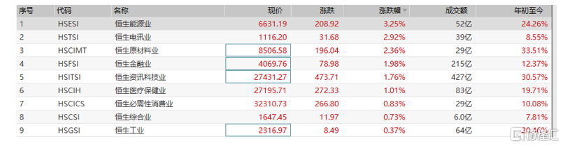 经济数据反转也就意味着相关基础行业的复苏,最典型的有能源,通信,金融,商业物业等等。从年初到现在,有些行业指数涨幅超过33%,远远跑赢了恒生指数的涨幅。可以这么说,香港经济的复苏不仅仅是这些行业指数在反应,而是整个市场已经开始反应了。