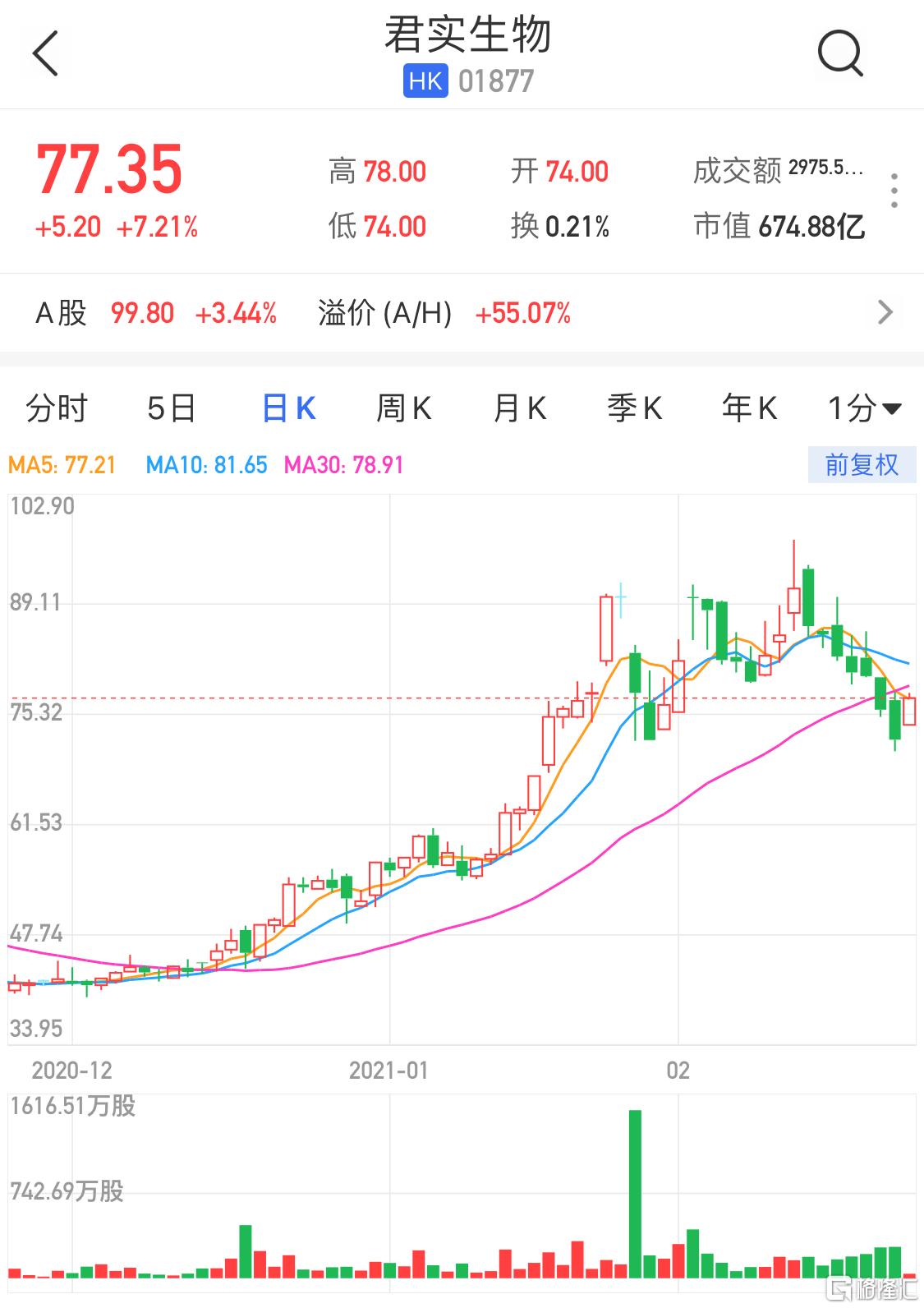 港股异动 | 君实生物(1877.HK)反弹超7%终结7连跌 抑制剂临床试验申请获受理