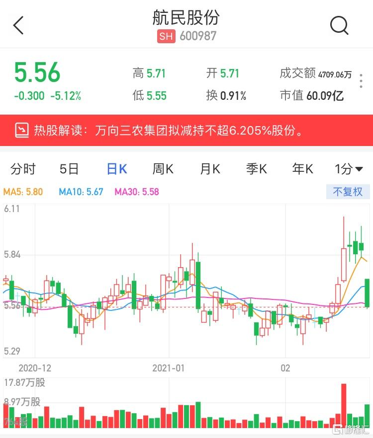 A股异动 | 航民股份(600987.SH)跌逾5% 万向三农集团拟减持不超6.205%股份