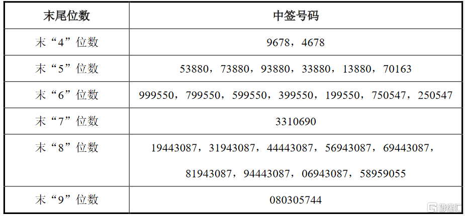 凡参与此次网上按市值申购定价发行的投资者持有的申购配号尾数与上述号码相同的,则为中签号码。中签号码共有2.781万个,每个中签号码只能认购1000股四方新材A股股票。