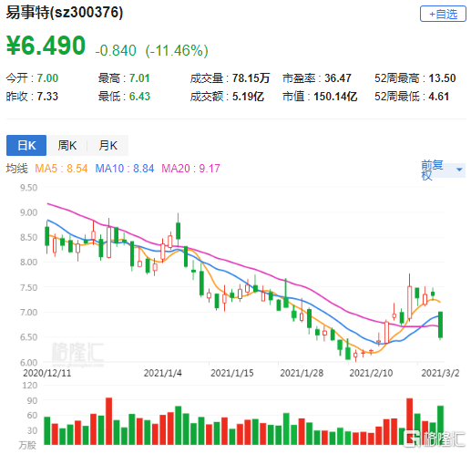 格隆汇3月2日丨易事特(300376.SZ)今早低开后持续下探,现报6.49元,跌幅11.46%,最新总市值150.14亿。公司昨日公告称,持有公司36.8586%的第一大股东东方集团计划在公告披露之日起通过大宗交易或者集中竞价交易的方式减持公司股份不超过6940.22万股,即不超过公司总股本比例的3%。