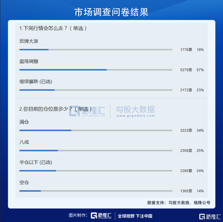 上周五,做了一个市场问卷,有57%的人认为本周会震荡调整,有34%的人是满仓状态。可见牛年开市后的7个交易日内,大盘持续下跌并没有跑多少,不少投资者都是满仓对应暴跌,当然持有市值会缩水不少。