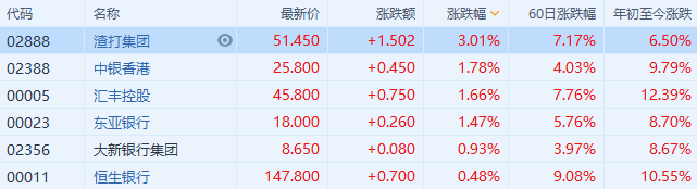 港股异动 | 香港银行股全线上涨 渣打(2888.HK)涨超3%